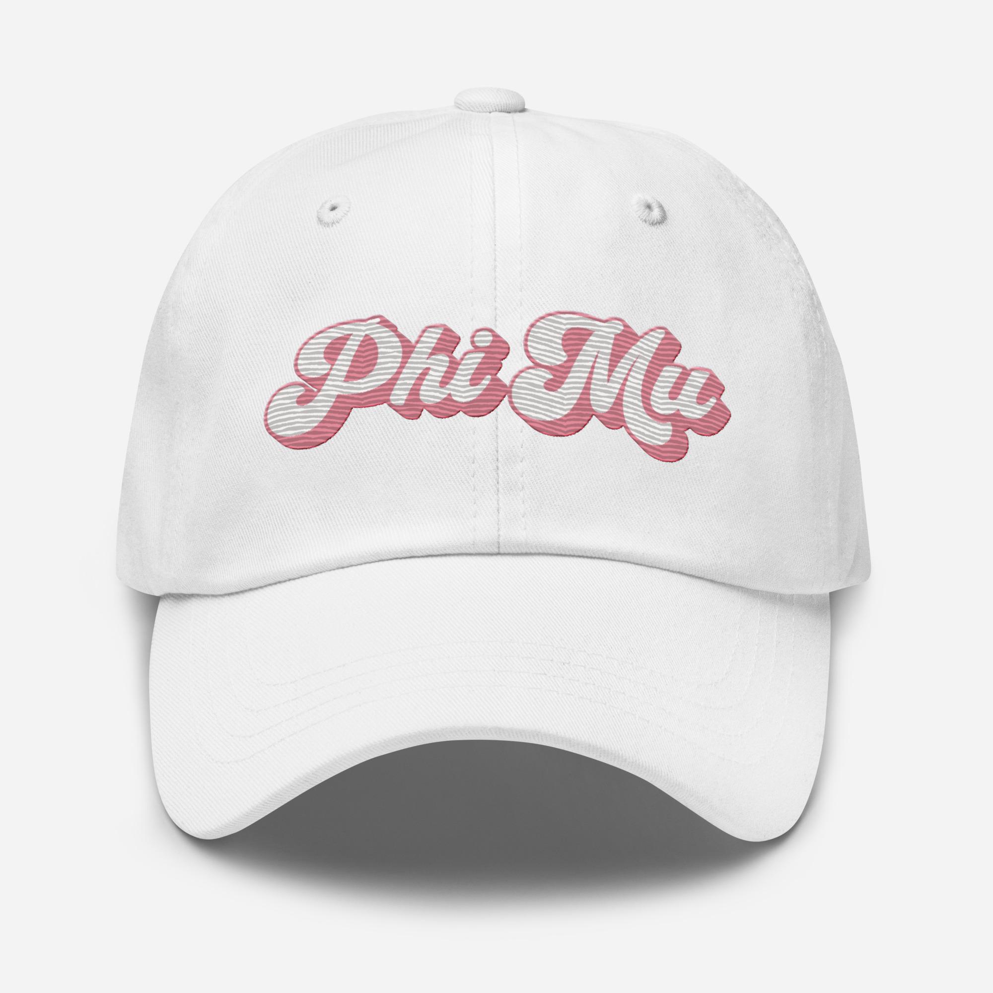Custom designed Phi Mu Monogramed Embroidered Hat. Brought to you by Leopalooza Designs, this is the perfect Hat to compliment you to and from class or around campus. This one's got a low profile with an adjustable strap and curved visor. As always, Leopalooza Designs are fully licensed through CLC Greek Licensing.