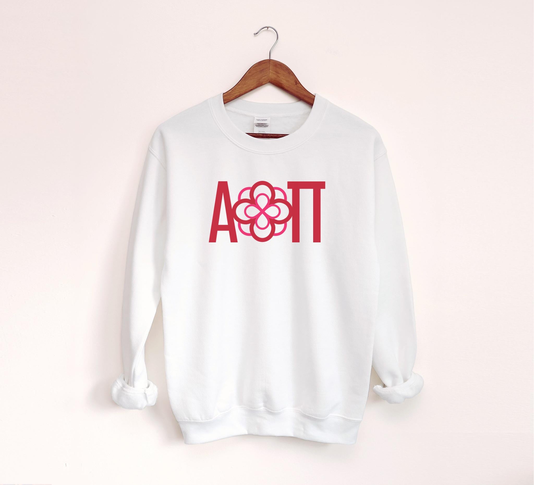 Show off your Alpha Omicron Pi pride in style with this one-of-a-kind sweatshirt designed exclusively for the bold and timeless women of AOPi. Whether you're on campus running errands, or cozying up for a sisterhood movie night, this sweatshirt blends comfort and style effortlessly.