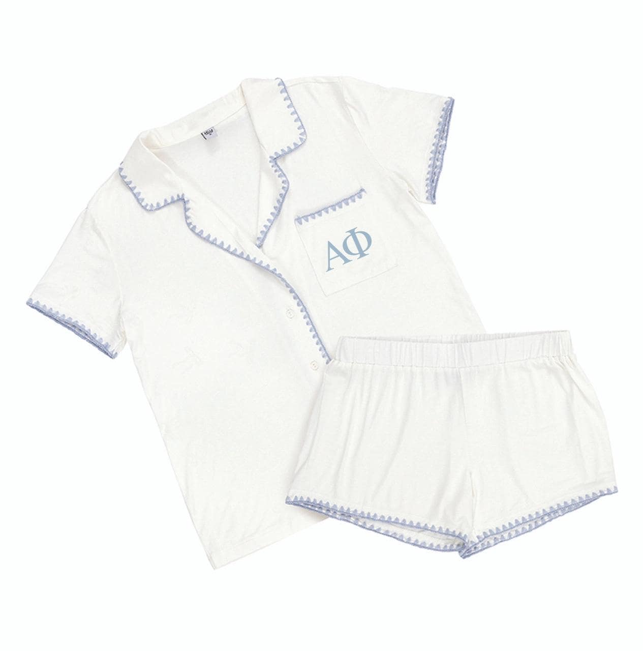 Enjoy your sleep every night with our unbelievably-soft luxurious Short Sleeve Whip Stitch Bamboo Pajama Set. Customized for you with your choice of Sorority. It's naturally cooling and also adopts to your body temperature, so you'll never be too hot or too cold again, it's just right. Available in Standard Sizing S, M, L, XL. Please choose your sorority option.