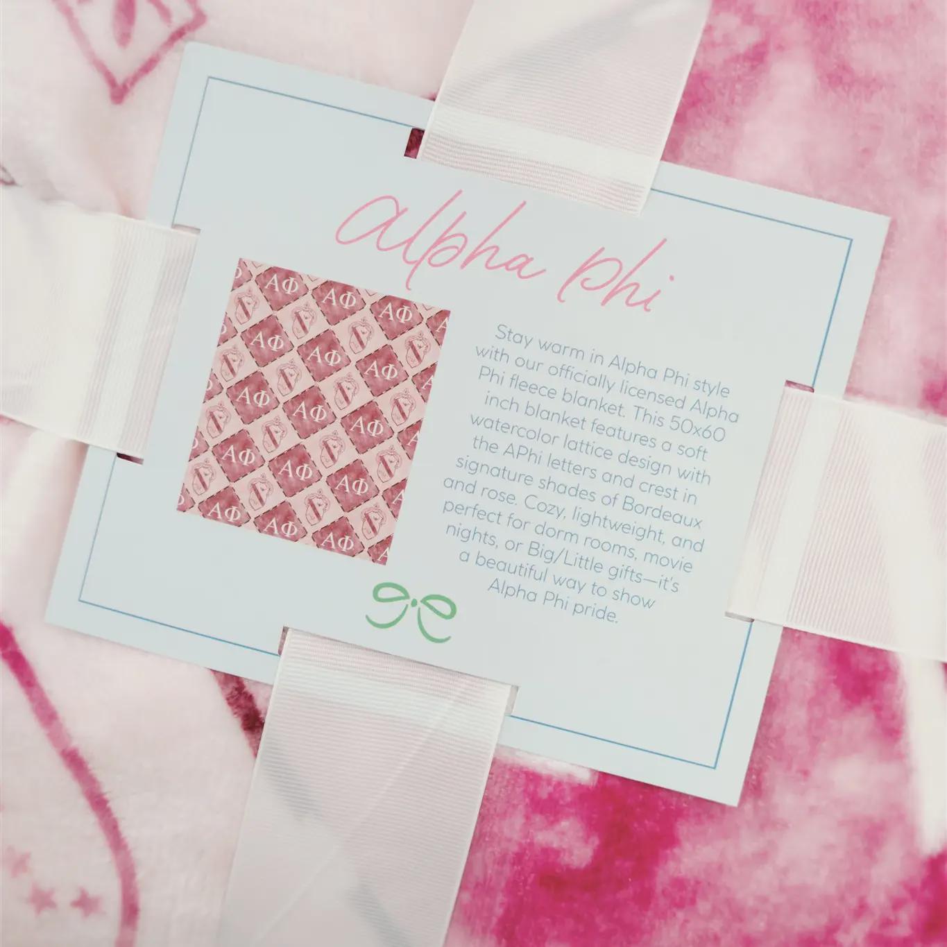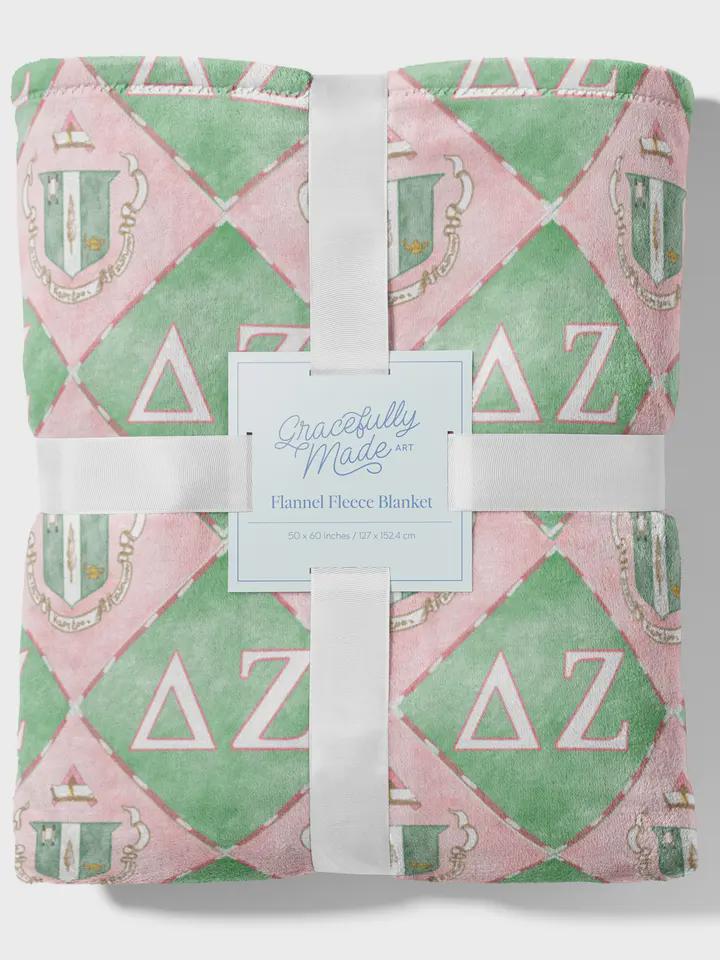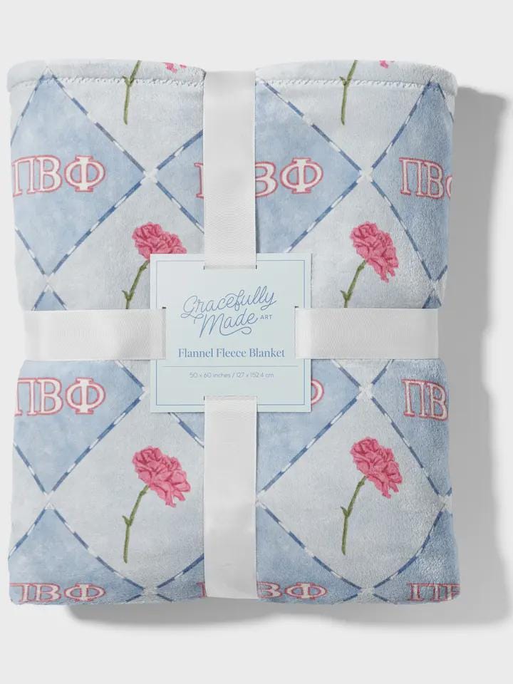 Stay cozy while showing off your sisterhood! This officially licensed sorority fleece blanket is customized specifically for your sorority, making it the perfect gift for Big/Little reveals, bid day baskets, initiation, or graduation. Each blanket is made with plush, high-quality fleece and personalized with your sorority's Greek letters. Perfect for dorm rooms, apartments, or sorority houses. Size is 50in x 60in. These blankets are officially licensed through Affinity Licensing and CLC Greek Licensing. Please specify which sorority when ordering.